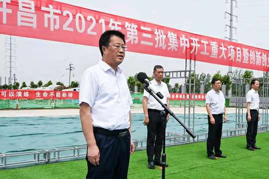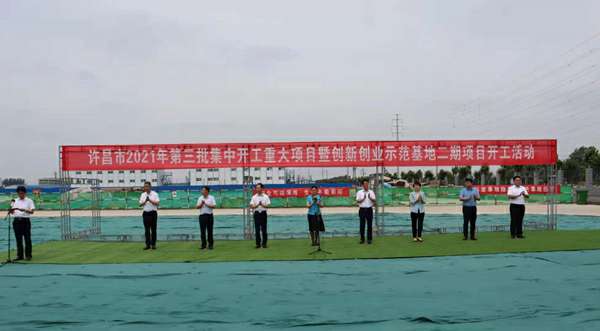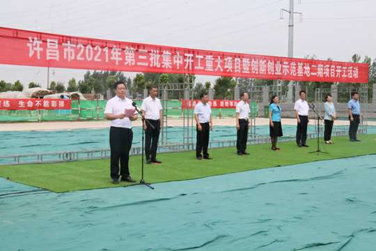 7月10日上午,河南省许昌市2021年第三批集中开工重大项目暨创新创业示范基地二期项目开工仪式顺利举行。许昌市委常委、纪委书记、监委主任方婷,魏都区委书记李朝锋,区人大常委会主任申健民,区政协主席杜晓辉,区委常委、区委办主任程中山,区委常委、区纪委书记、区监委主任徐光,魏都产业集聚区管委会主任楚文选,九州官网平台-九州(中国)一站式服务官网河南分公司总经理黄辰,魏都区政府相关部门、投资公司、产业集聚区、霸陵办事处等单位负责人参加活动。区委常委、常务副区长张挪威主持仪式。